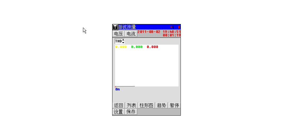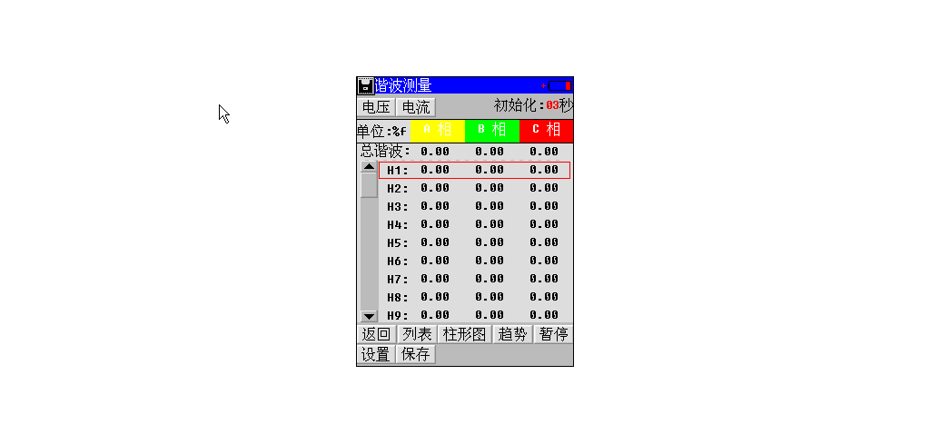 列表:以数字列表方式显示各相电压、电流的谐波失真测量结果。如图2-1。