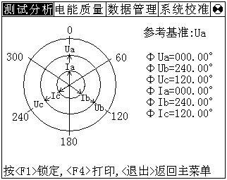 3、可显示被测电压和电流的矢量图,用户可以通过分析矢量图得出计量设备接线的正确与否。