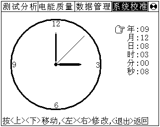 时间校准界面如图二十一所示。此功能屏用来调整当前仪器内部时钟的日期和时间。