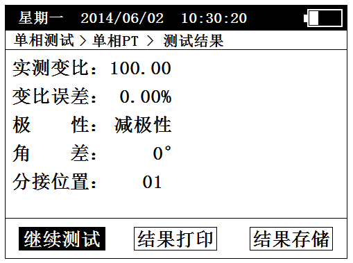 操作和“三相变比测试结果”屏类似。