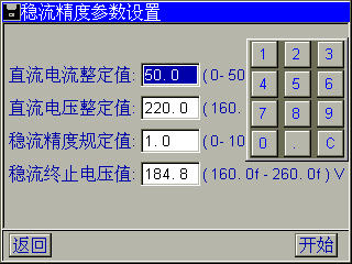 稳流终止电压值:指退出稳流状态的电压值。缺省值为184.8V。