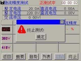 图4-3-5稳流精度测量趋势显示 图4-3-6 稳流精度测量终止测试