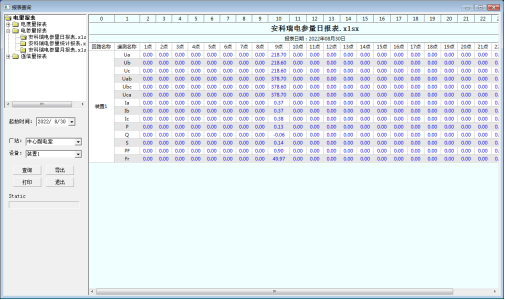 系统同时具备定时抄表汇总统计功能,用户可以自由查询自系统正常运行以来任意时间段内各配电节点的用电情况,即该节点进线用电量与各分支回路消耗电量的统计分析报表。