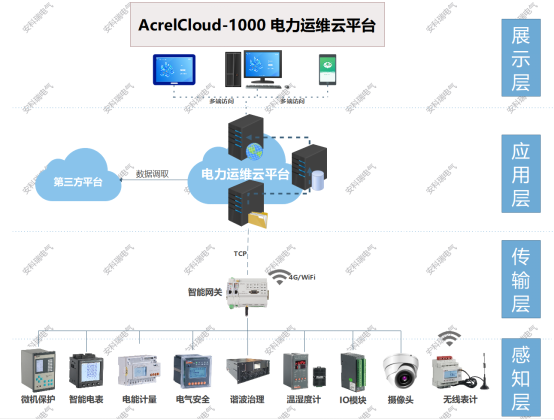 AcrelCloud-1000变电所运维平台采用分层分布式结构进行设计,系统拓扑结构如下: