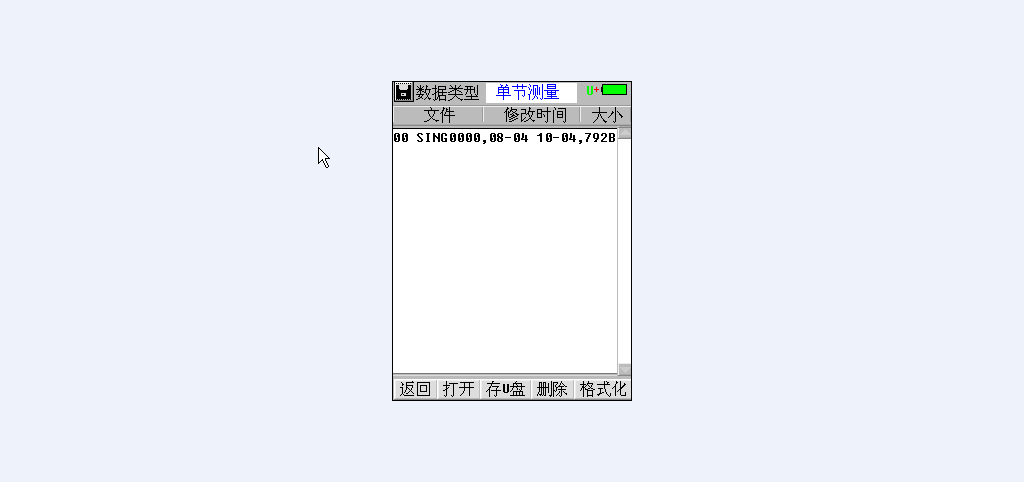 双击主界面“数据管理”菜单项进入数据管理功能界面,包括单节电池测量数据和成组电池测量数据,可对数据记录进行打开回放、转存U盘、删除等操作,同时还可以格式化数据记录。