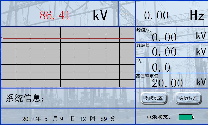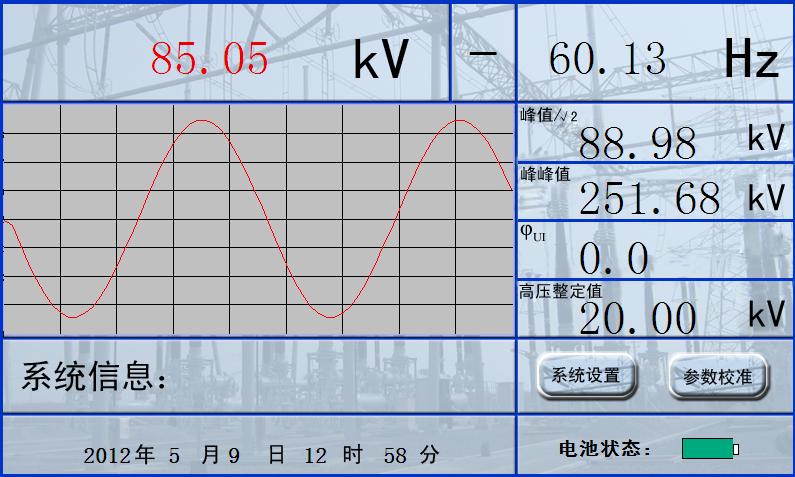 智能数字千伏表由交直流分压器和LCD数显表头二部分组成。分压器为无源阻容分压器,由高精度低温漂电阻和精密电容构成。LCD数显表头由单片微型计算机及大屏点阵液晶显示器等构成。高压由分压器分压取样,通过同轴电缆接入数显表头中,自动切换交流与直流功能,交流测量时可在表头的显示屏上同时显示被测高压的波形、真有效值、峰峰值、峰值/