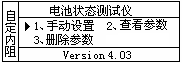 - 在自定内阻状态下,按数字键2选择[查看参数];查看自定义的电池参数。