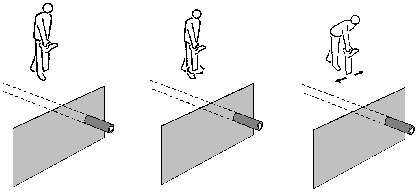注意,在将接收机倾斜时,注意观察接收机上的标志线,当一根标志线水平于地面,另一根垂直于地面时,接收机正确的倾斜了45°。