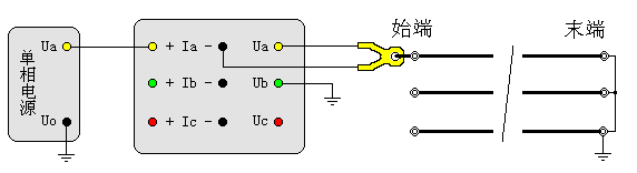 线地阻抗指的是用单相法测量任意相线路对地之间的阻抗,将线路末端短路接地,始端各相独立悬浮,由测试相施加单相电源,接线如图二十五: