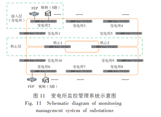 远程监控管理中心系统设在智能化监控机房(兼消防控制中心)内,系统监管区域内各子变电站、监控中心系统均设置了冗余系统。变电所监控管理系统示意如图11所示。