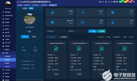 AcrelEMS平台支持企业接入电动汽车充电桩和电动自行车充电桩,并为企业提供充电桩状态监测、交易管理、充电负荷控制和充电安全管理等功能。