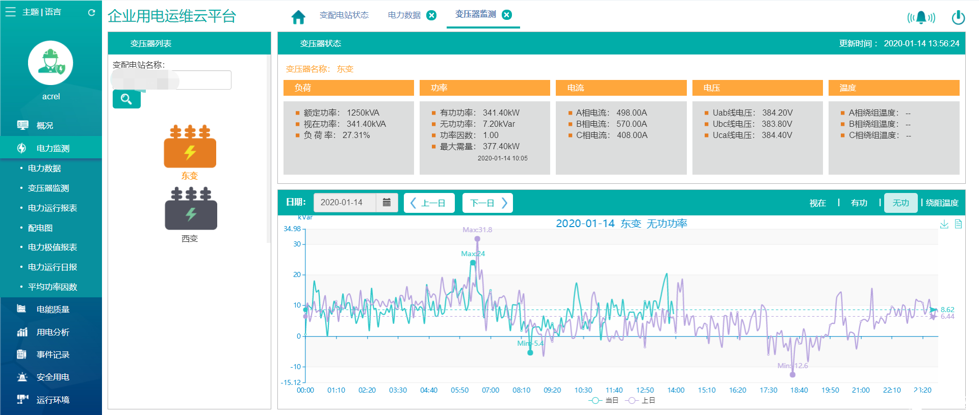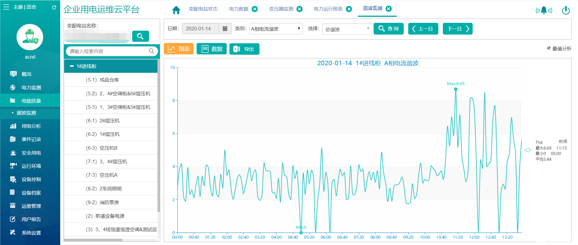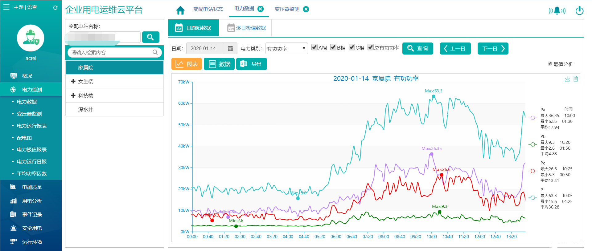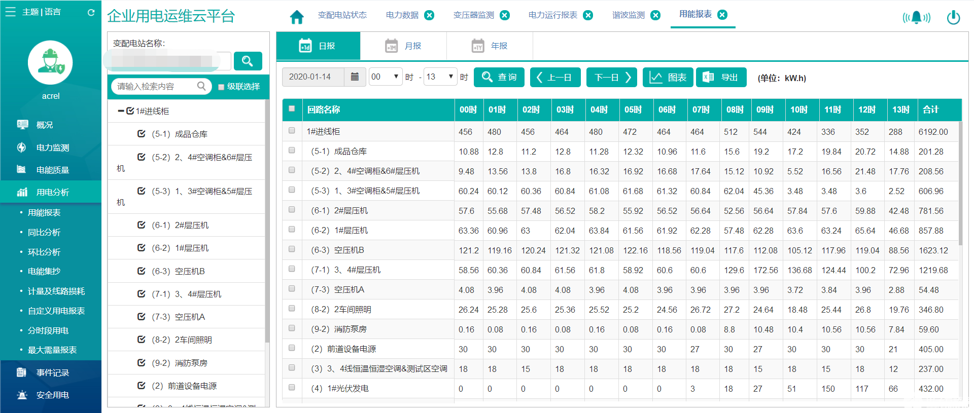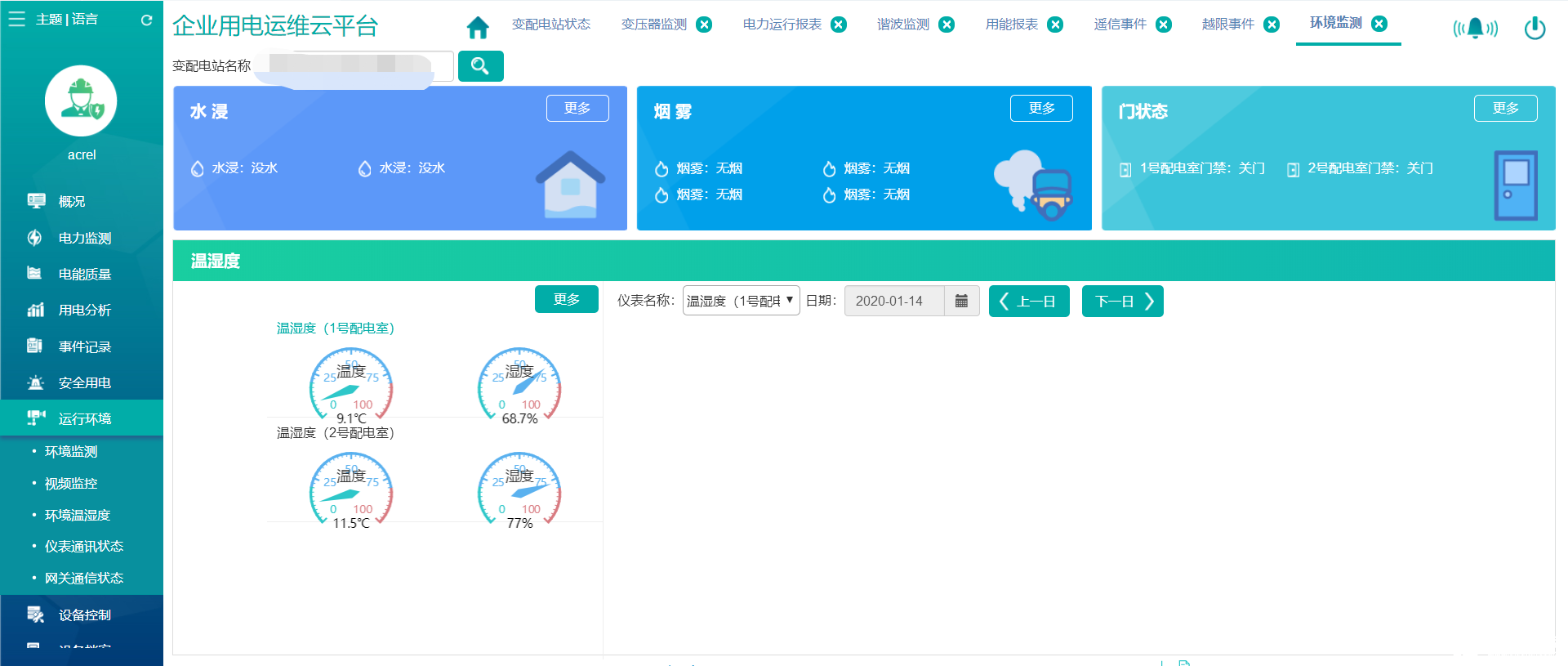 AcrelCloud-1000变电所运维云平台运用互联网和大数据技术,提供实时全方位的监视用户配电系统的运行状态和电量数据,为用户提供更便捷、更全面的运维服务。