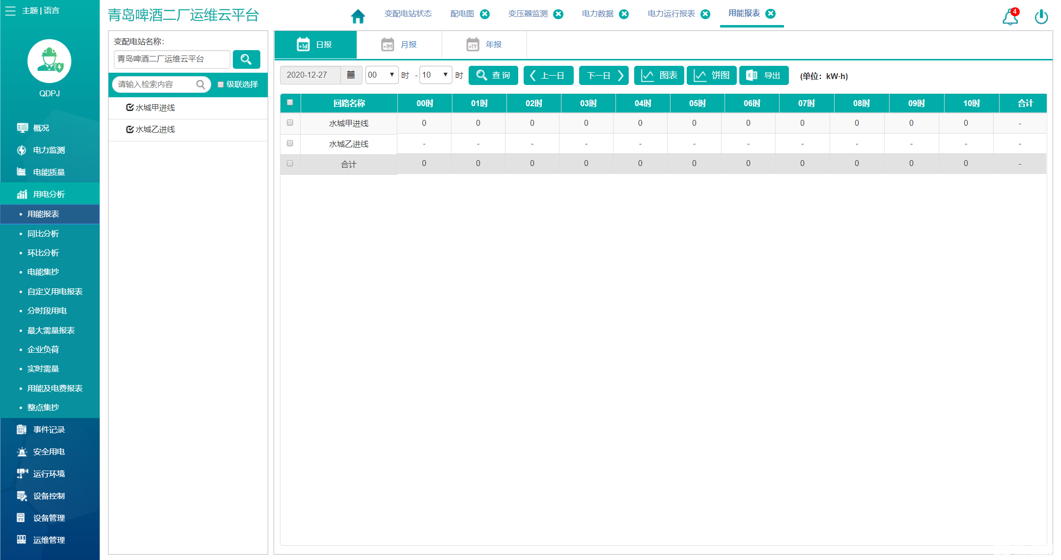 用电分析包括用能报表、同比分析、环比分析、电能集抄、计量及线路损耗。