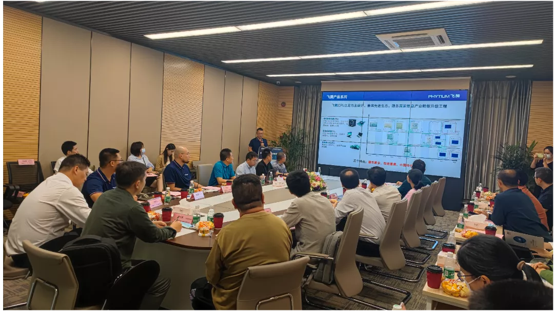 活动期间,企业代表们参观了中国电子联合攻关珠海基地展厅及适配中心,飞腾技术(广州)有限公司、翼辉信息技术有限公司和中电港分别就国产芯片产品、操作系统在电力领域的应用以及国产供应链体系等进行了介绍和分享。在答疑和交流环节,技术专家与企业研发技术人员针对国产化兼容性适配等技术应用问题展开了深入讨论。