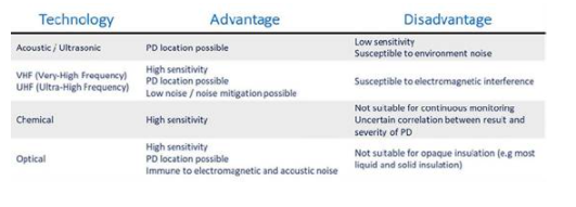 图表1:主要局部放电检测技术概述