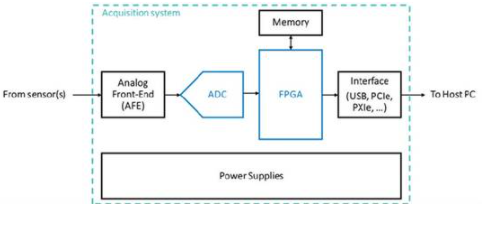 采集系统的另一个关键部分是与ADC接口的前端处理单元。在大多数情况下会使用FPGA完成这一工作。FPGA与ADC连接,完成第一阶段的处理,然后把处理后的数据发给主机PC,主机PC会对数据进行额外的后期处理、存储和转译,决定当检测到局部放电时应如何采取行动。FPGA的并行处理能力和高级接口选项特别适合这种应用。