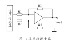 环境温度检测是采用AD590温度传感器实现的,它具有较高的精度和重复性,相对于热敏电阻精度有所提高,且检测温度范围为:-55℃~+155℃。检测电瓶温度和光伏阵列温度采用PT100铂电阻。为了获得A/D采集卡采集的电压信号,还必须外加电压取样电路。取样电路采用高阻抗同相放大器。检测电路原理如图3所示。