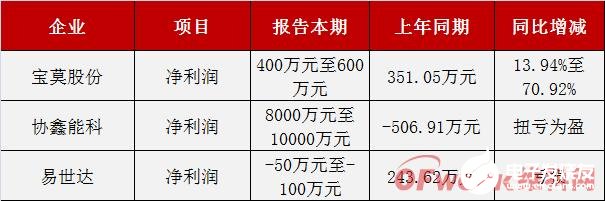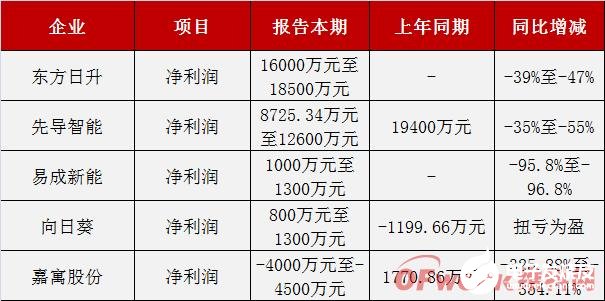 受疫情影响较大的还有易成新能,2020年第一季度,物料采购、生产经营和产品销售等工作都受到了一定程度的影响,导致本期业绩同比下滑95.8%-96.8%。