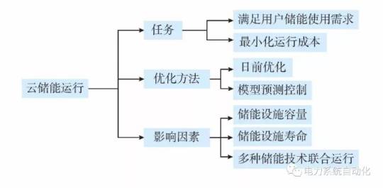 云储能依赖于共享资源而达到规模效益,使得用户可以更加方便地使用低价的电网电能和自建的分布式电源电能。云储能可以综合利用集中式的储能设施或聚合分布式的储能资源为用户提供储能服务。云储能可将原本分散在用户侧的储能装置集中到云端,用云端的虚拟储能容量来代替用户侧的实体储能。云端的虚拟储能容量以大规模的储能设备为主要支撑,以分布式的储能资源为辅助,可以为大量的用户提供分布式的储能服务。