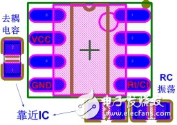 (2)以每个功能电路的核心元件为中心,围绕它来进行布局。元器件应均匀、 整齐、紧凑地排列在PCB电路板上,这样,不但美观,而且装焊容易,易于批量生产。尽量减少和缩短各元器件之间的引线和连接;振荡电路,滤波去耦电容要紧靠近IC,地线要短,如图1所示。