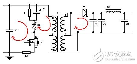(5)元件布局的时候,要优先考虑高频脉冲电流和大电流的环路面积,尽可能地减小,以抑制开关电源的辐射干扰。如图3所示的几个电流环路是需要特别注意的。