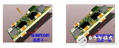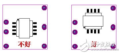 (8)布板时要注意底面元件的高度。例如对于灌封的DC-DC电源模块来说,因为DC-DC模块本身体积就比较小,如果底面元件的高度四边不平衡,灌封的时候会出现两边引脚高度一边高一边低的现象。