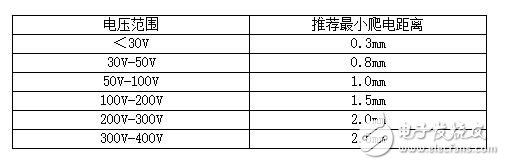 一般电源模块电压与最小爬电距离的关系可参照下表: