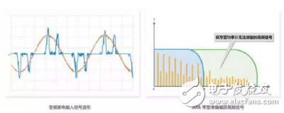 变频家电在节约能耗的同时亦令产品的波形信号容易发生畸变。这些畸变的波形都是非正弦信号,如脉冲波、三角波、矩形波、梯形波和脉冲波等,含有丰富的高频谐波分量。普通的功率计由于采样率与带宽限制,无法对高频成分进行准确测量,因此其测量值与真实值存在巨大差距。