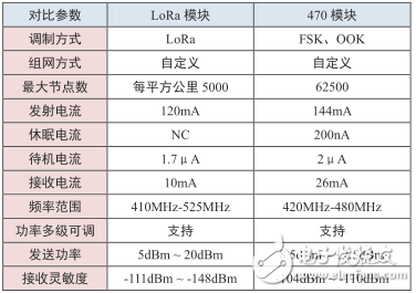 表2 LoRa与普通470模块参数对比