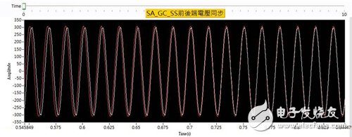 图4 微电网静态开关重新併网的内、外电网电压同步波形。
