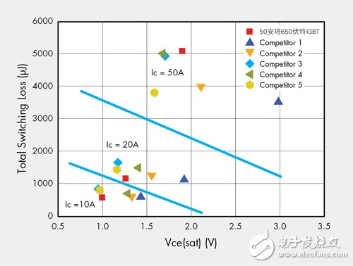 图4 新型IGBT与其他竞争方案的功率损耗预估