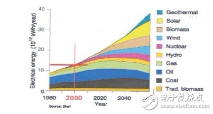 当前可再生能源的发展和利用将引发第四次工业革命;在所有可再生能源利用方法中,光伏发电是整个可再生能源发展的关键组成部分。根据世界能源组织预测,随着传统能源(例如:煤炭、石油等)逐渐枯竭,可再生能源将成为人类的主要能源。图1显示了世界能源的发展趋势。