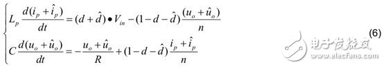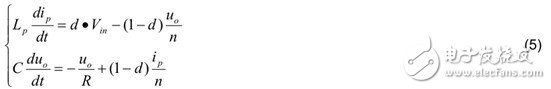 利用这种平均状态空间方法,如果占空因数为d,则可以得到如下方程式: