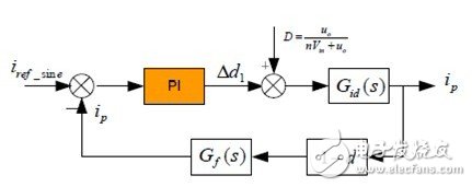 为了获得正弦波输出电流,次平均电流必须为正弦波;因此,必须把反馈电路改为如下模型: