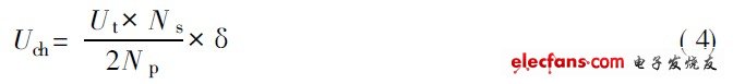 式( 4) 在理论上表明了均衡充放电状态下的电池组总电压与均衡充电电压之间的关系。一方面, N 个相等的Uch实际上是Ut 的某个比例[ ( Ns / 2N p)×δ ] 分压; 另一方面, 在δ不变的条件下, 可以通过调整高频变压器原边绕组的匝数调整匝比( Ns / Np) 以控制充电电压, 也可以在匝比( N s/ N p) 不变的条件下, 通过控制δ 的大小, 控制Uch的大小。Uch越高, 充电电流就越大, 充电能量也就越大, 同时在电池组中接受充电均衡的电池就越多, 反之亦然。