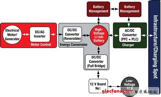 汽车、卡车和摩托车中采用的混合动力和电动传动系统,在交通运输产业引发了新的、前所未知的挑战。原来的12V电压网络现在需辅之以400V或更高的电池和电源系统,从而对汽车OEM和系统模块供货商提出了一系列全新要求。诸如高压电池、DC/DC转换器、用于驱动马达的逆变器,以及连接到230V/380V电网的车载充电器模块等混合动力/电动车内的全部功能,都提出了隔离要求(图1)。