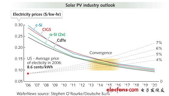 将太阳能从新兴能源转变为主流能源面临着多方面的机遇和挑战。尽管来自太阳光照的能量巨大无比,但限于设备转换费用昂贵以及转换效率仍有待提高等原因,使太阳能光伏成为免费商品的路还很漫长,而利用半导体来管理转换系统则能够很容易地解决这个问题。目前,光伏能的发展在很大程度上取决于激励机制、政策主张和“小额贷款”的资本投资模式。然而,太阳能光伏总有一天会与化石燃料在价格上持平,这一点毫无疑问。从系统角度来看,大规模部署太阳能装置会改变能源配送的模式,因为这将会涉及诸多因素,如电网运行、负载处理以及其他实际问题。这意味着光伏能的推广应用正处于或已经接近它的转折点,而半导体技术的最新发展恰恰具有推动这种转变的潜力。