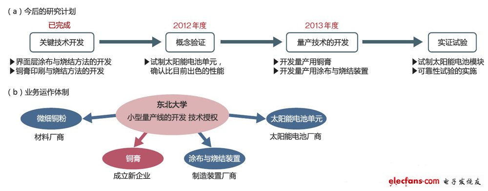 关键技术的开发和概念验证预定在2012年度内完成(a)。今后将在开发量产技术的同时,向各厂商提供技术授权,尽快实现业务运作(b)。其间将新成立铜膏制造企业。