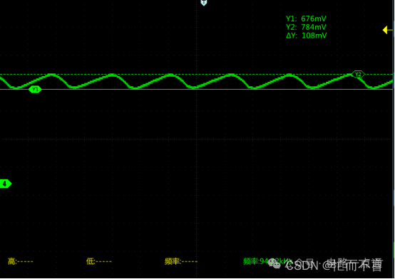 1、测试发现输出电压纹波超过100mV,纹波频率约94kHz。不满足后级芯片对纹波噪声的要求。如下图