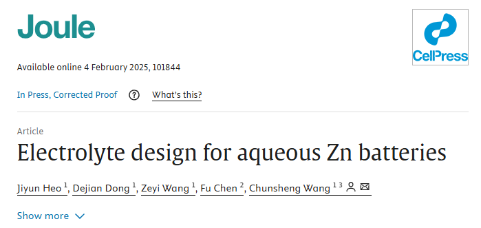 Electrolyte design for aqueous Zn batteries. Joule, https://doi.org/10.1016/j.joule.2025.101844.