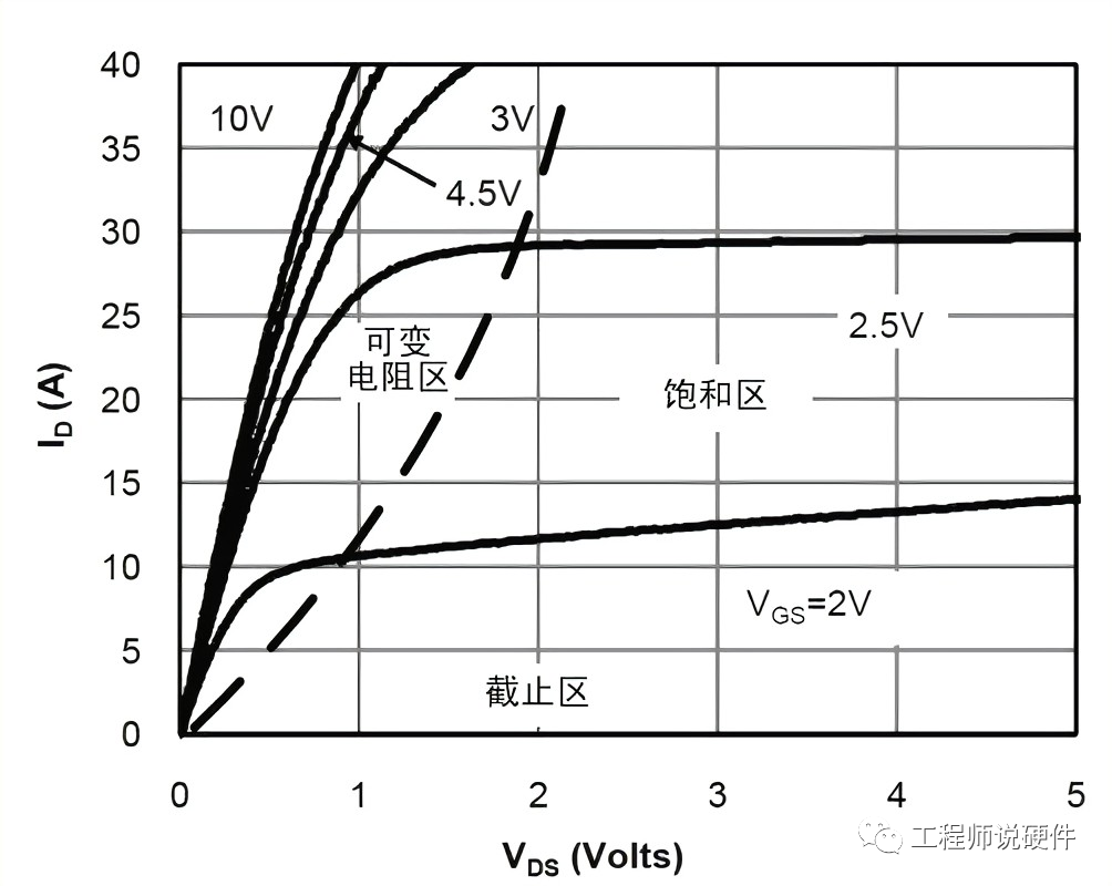 我们都知道LDO是线性稳压器,其原理就是通过反馈电阻、误差放大器等模块,使内部的MOS管工作在恒流区(即饱和区),如下图所示,从而使输出电压保持稳定。那么,损耗