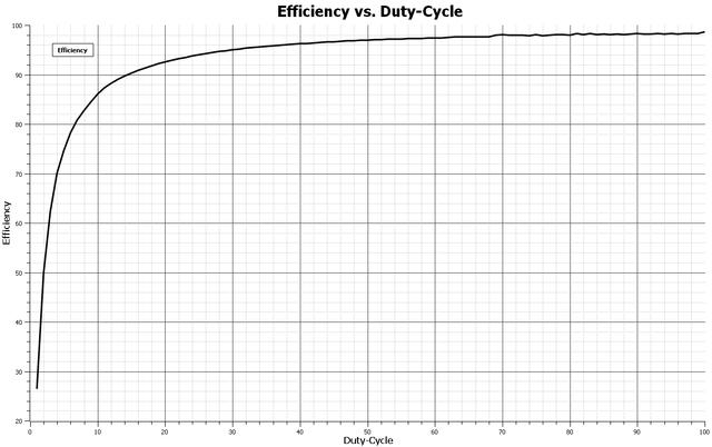 图 3:降压转换器的效率在很大程度上取决于 PWM 的占空比,即相同负载下输出电压的降低比率