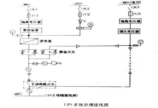 UPS系统为单相两线制系统,输入电源为三相交流或直流,输出电源为单相交流。