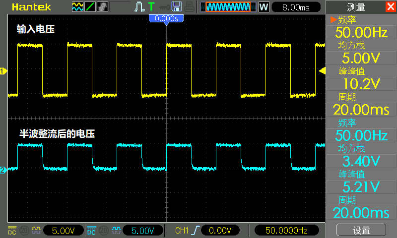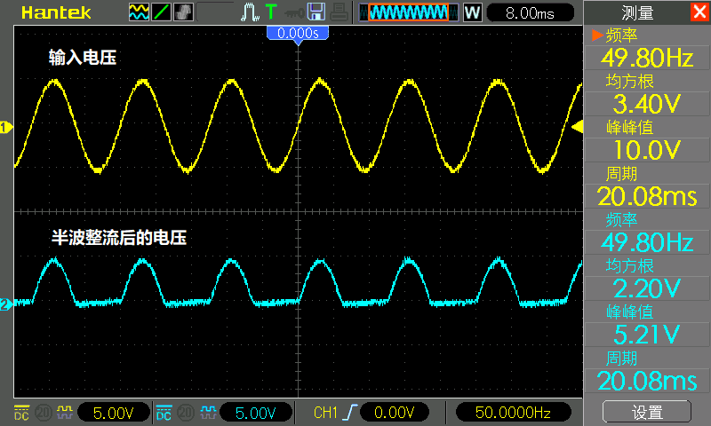 下面是上面单二极管整流波形图: