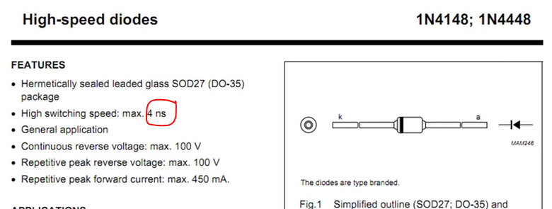 1N4148 的切换速度达到 4 纳秒