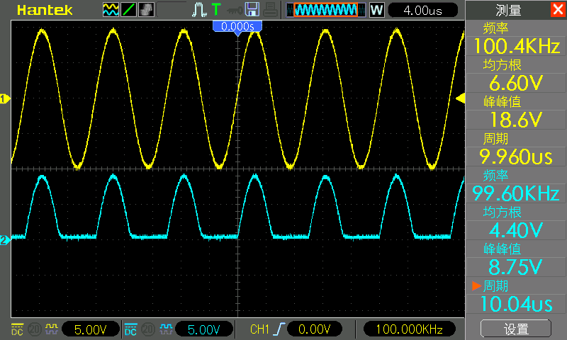 在输出的波形后面加一个 1N4007 二极管,然后测量二极管两端的电压,可以从波形中看到负电压被截断了。