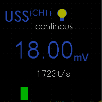 打开主机,点击选择CH1,将当前通道选择到通道1上,单击“MENU”菜单键,在菜单栏按F1键将“放电检测”选择为USS,按F2键设置是否“输出电压”及“单位”。使用超声波传感器进行检测时需要输出电压。