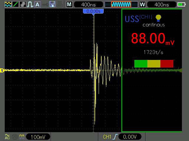 开启主机,并从菜单中选择USS(超声波模式)插入提供的耳机并调整音量,读数会在显示屏上连续更新。应该测量背景噪声,在任何情况下,都应该确保遵守安全距离的要求。