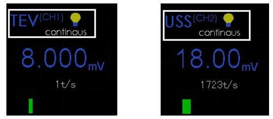 如需使用两个通道进行检测时可连接两个传感器,使用两通道检测需将两个通道同时打开并进行单独的设置,可将通道1设置为TEV,通道2设置为USS。