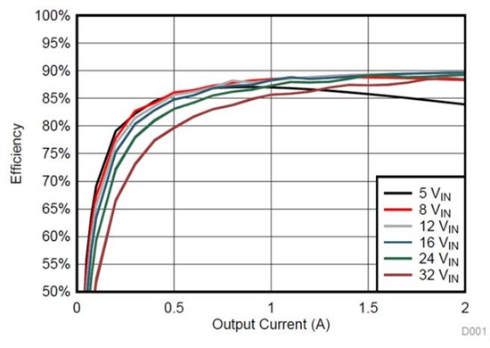 反激式转换器的一个常见的缺点是缺乏效率。典型反激式转换器的效率约为60-75%。这主要是由于变压器中的感应损耗和整流二极管的压降。通过精心设计变压器和选择开关频率,LM3481反激式EVM可以达到几乎90%的效率,如图3所示。